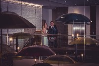With the Robert Gordon Ballroom ceremony over, it's time for your drink’s reception on the mezzanine. But before we get that far, I will use the lobby for a big group photo of everyone looking down from the mezzanine. Family group photos are out of the way. I will take you away for a moment's pause, using this stylish hotel's features, whether the LED-lit corridors, the umbrellas adorning the lobby, or the Freedom Whisky Bar.